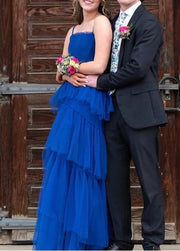 Robe de bal trapèze à bretelles spaghetti superposées
