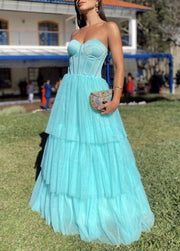 Robe de bal longue et élégante à plusieurs niveaux, coupe trapèze, sans bretelles