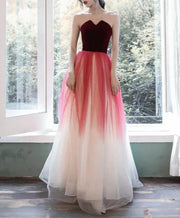 Robe de bal trapèze en tulle sans bretelles, longueur au sol