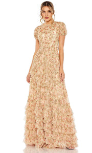 Robes de soirée pour femmes / Robe de bal trapèze à manches courtes et motif floral pour la mère du marié / Robe de bal en magasin