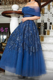 Robes de soirée pour femmes, faites à la main, épaules dénudées, longueur thé, sans manches, coupe trapèze, couleur unie, robes de bal, magasins