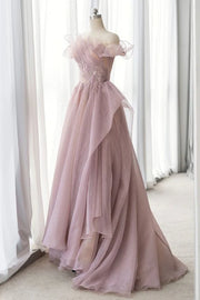 Robe de bal longue trapèze en tulle à épaules dénudées