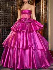 Robes de bal, robes de soirée, coupe trapèze/princesse, sans bretelles, longueur au sol, à volants, robes de soirée formelles pour femmes