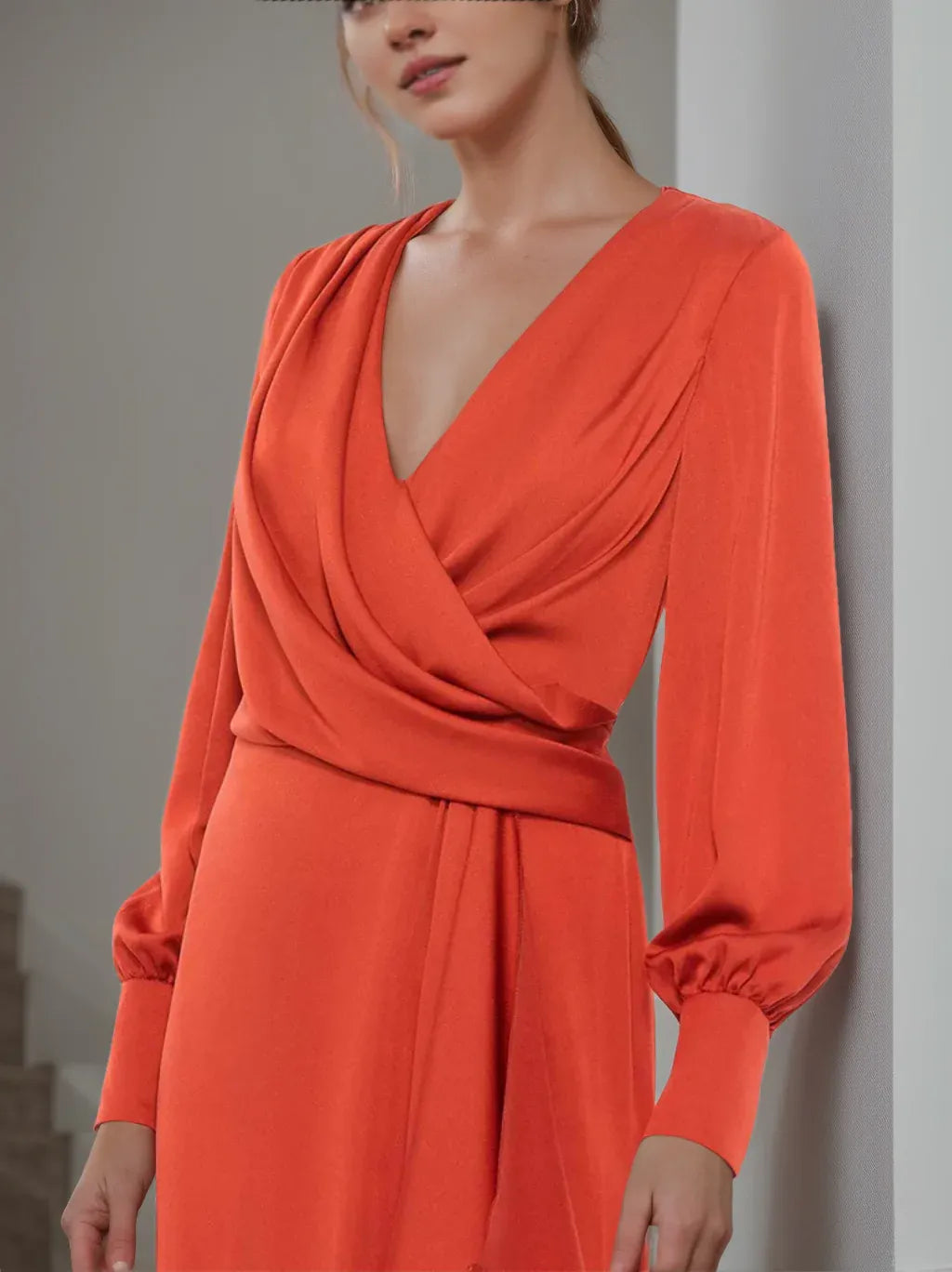 Robes de bal de fin d'année, coupe trapèze/princesse, col en V, manches longues, longueur au sol, robes de mère de la mariée à volants, robes de soirée pour femmes - US 2 / UK 6 / UE 32