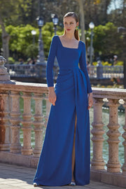 Robes de bal à manches longues, coupe trapèze, taille cintrée, col carré, fente sur le devant, robes de soirée pour femmes