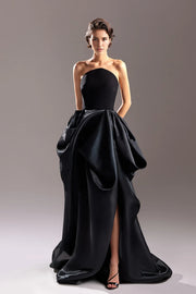 Robes de bal sans manches trapèze, robe de bal noire sans bretelles avec fente latérale, robes de soirée pour femmes - US 2 / UK 6 / UE 32