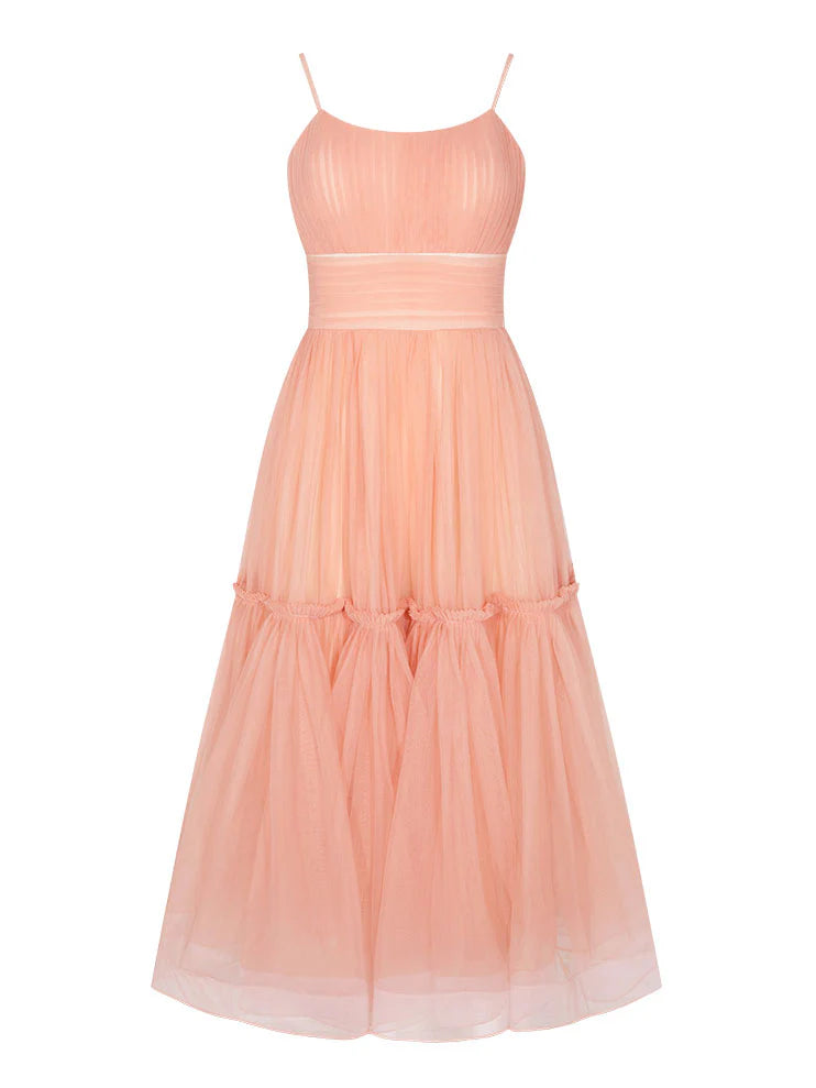 Robe de bal courte en tulle à bretelles spaghetti et coupe trapèze - Rose / US 2 / UK 6 / UE 32