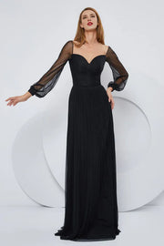 Magasins avec robes de bal élégantes, décolleté carré, manches longues, ligne A, longueur au sol, robes de soirée - US 2 / UK 6 / UE 32
