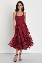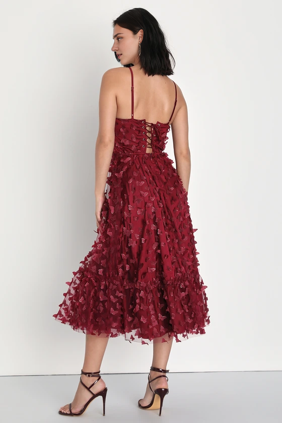 Robes de soirée Weitese pour femmes, coupe trapèze, bordeaux, bretelles spaghetti, lacets, longueur thé, robes de bal, magasins - US 2 / UK 6 / UE 32