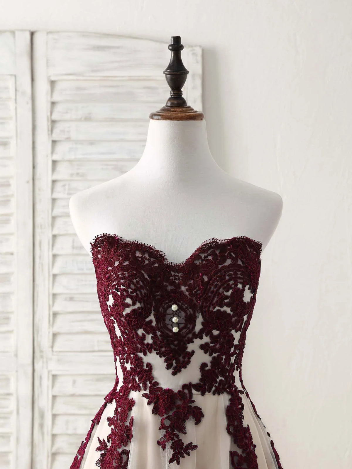 Robes de soirée Weitese pour femmes, élégantes, sans bretelles, coupe trapèze, en tulle, avec appliques, robe de bal formelle, magasins de robes de bal - Bourgogne / US 2 / UK 6 / UE 32