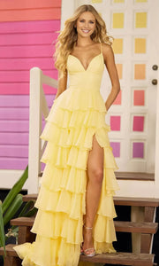 Robes de soirée Weitese pour femmes, à volants, bretelles spaghetti, robe multicouche avec fente, robe de bal sans manches, ligne A, dos nu, longueur au sol, magasins de robes de bal