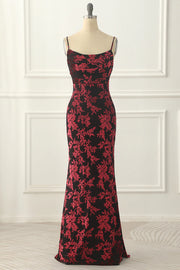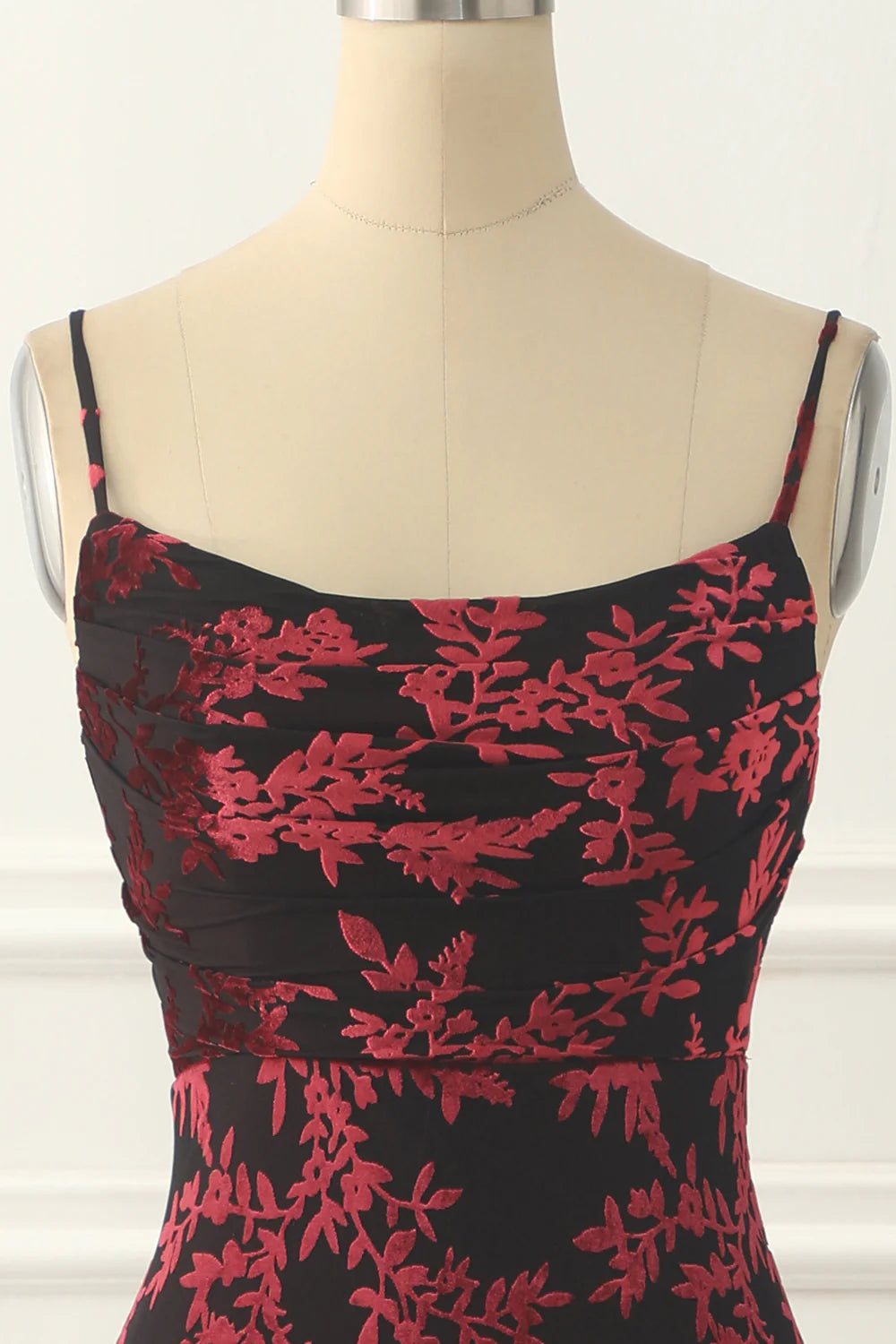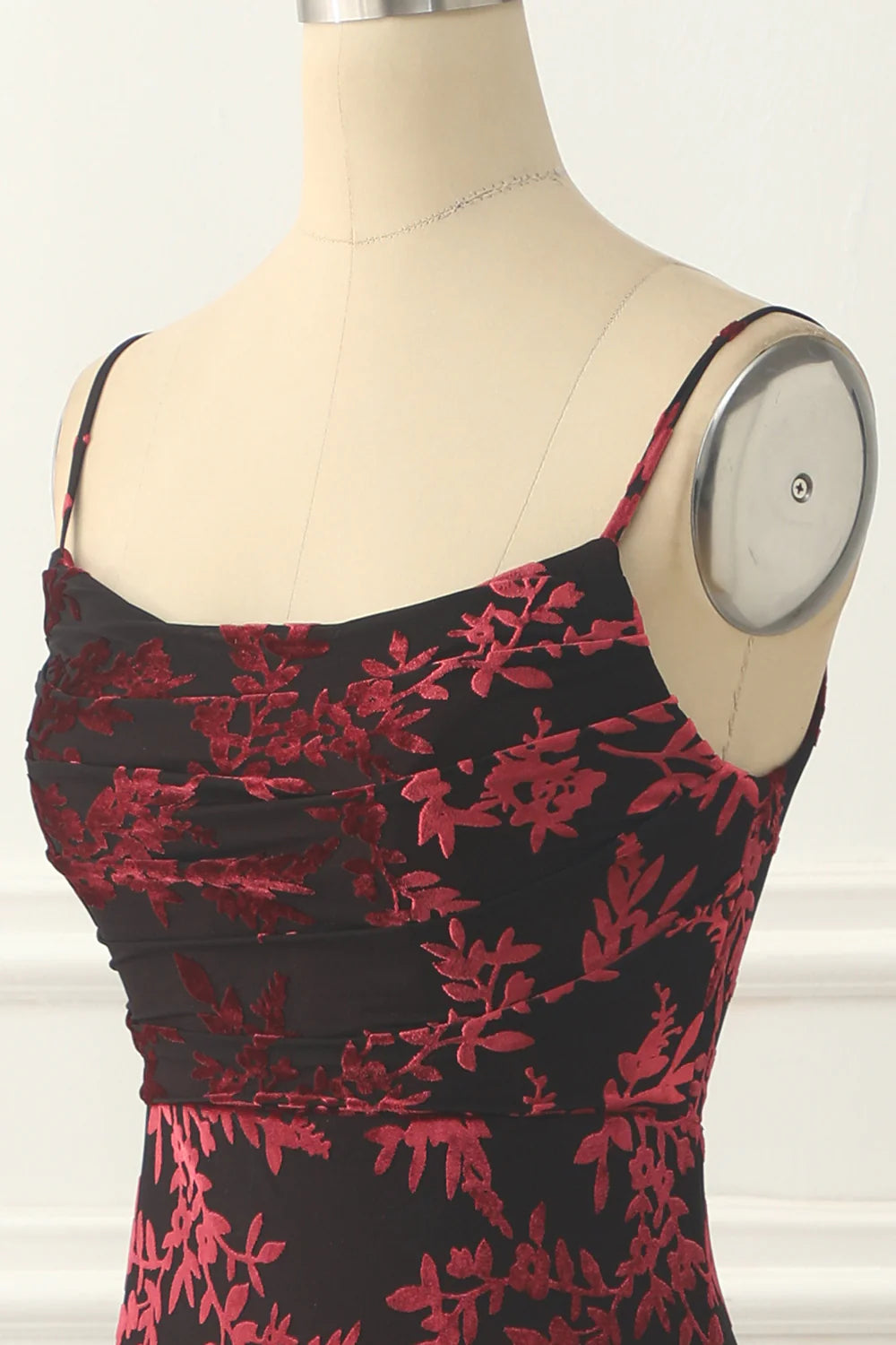 Robe de bal fourreau en velours à fleurs dévorées avec bretelles fines