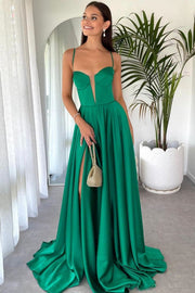 Robe de bal longue verte à bretelles spaghetti et dos croisé Weitese Beauty
