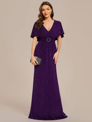 Robe de soirée moulante plissée à col en V et manches chauve-souris scintillantes de Weitese - US 2 / UK 6 / UE 32