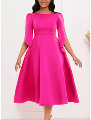 Robe de bal Weitese pour femme, robe de soirée, robe fourreau, robe mi-longue, bleu royal, violet, vert, demi-manches, couleur unie, froncée, automne-hiver, col ras du cou, mode soirée, vacances - Rose / US 2 / UK 6 / UE 32
