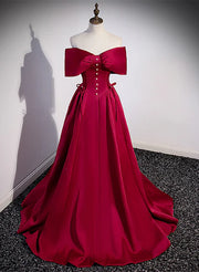 Robe de soirée longue en satin rouge vin à décolleté en cœur