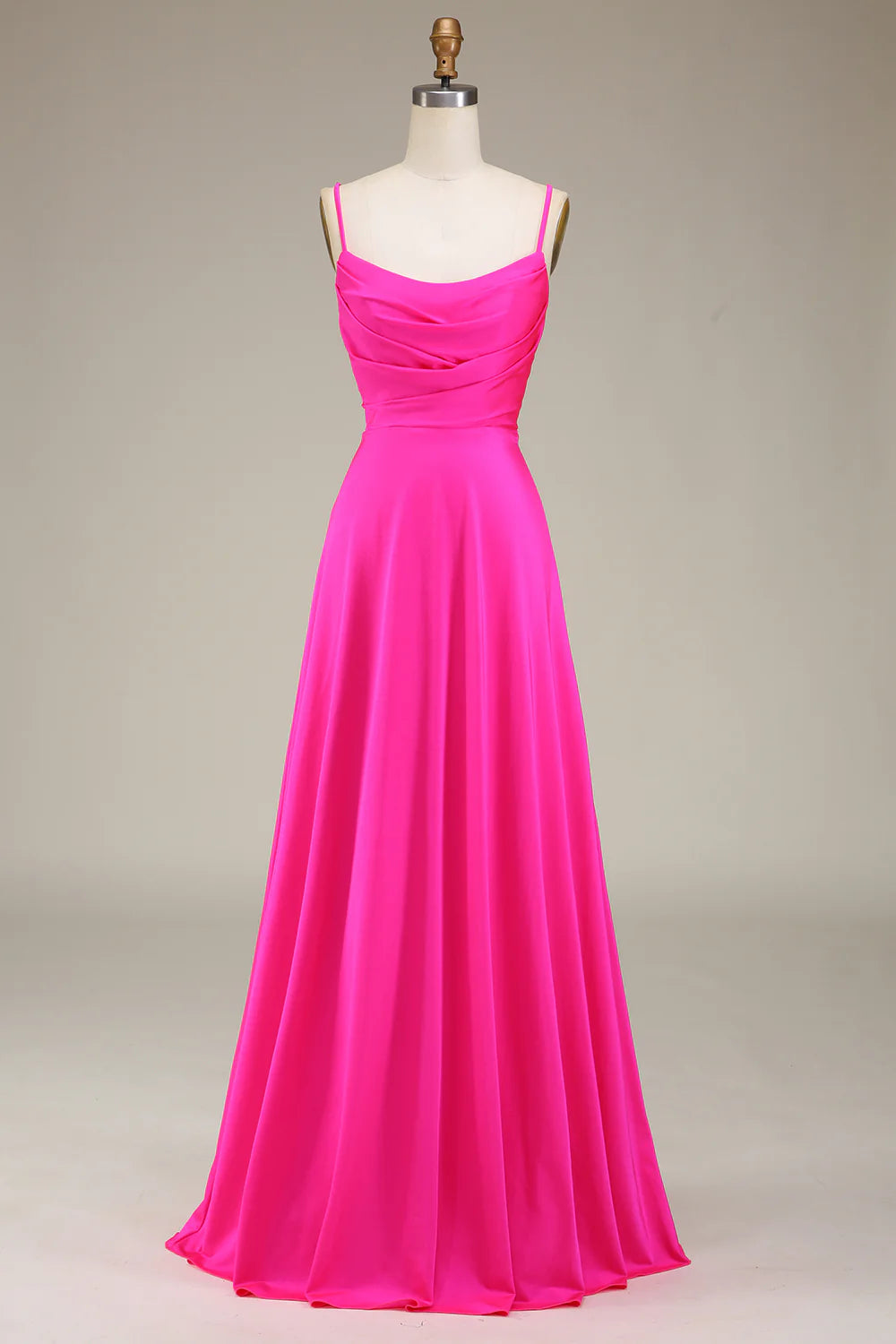 Robe de demoiselle d'honneur trapèze à bretelles spaghetti et plis