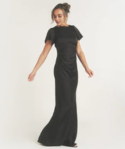 Robe Weitese à manches flottantes et dos noué en satin, robe de demoiselle d'honneur noire plissée, couleur unie, robe de bal à la mode - US 2 / UK 6 / UE 32