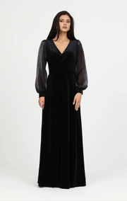 Robe de mariée en velours, robe fendue, robe longue à manches longues, tenue de mariée élégante, robe de soirée - Noir / US 2 / UK 6 / UE 32