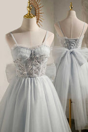 Robe de soirée courte avec nœud perlé dans le dos