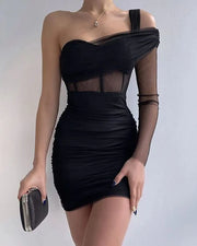 Robe de soirée moulante à épaules dénudées et manches longues