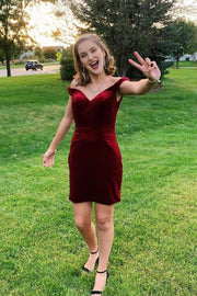 Robe moulante en velours bordeaux à épaules dénudées et sans manches