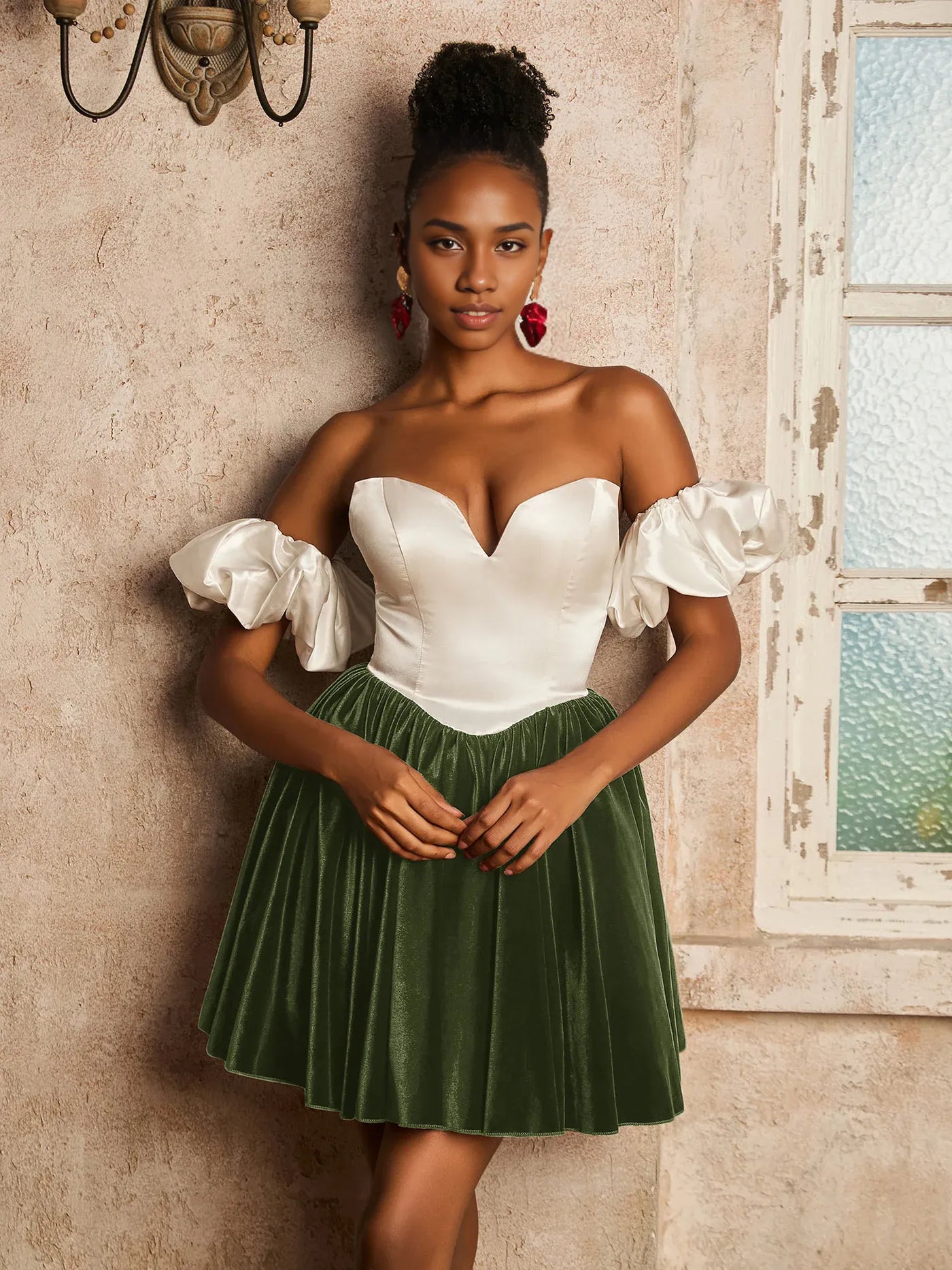Robe de soirée courte à épaules dénudées et manches amovibles