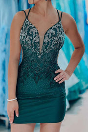Robe de soirée courte dos nu à bretelles spaghetti et lacets