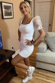 Robe de soirée moulante à col carré et manches transparentes - Blanc / US 2 / UK 6 / UE 32