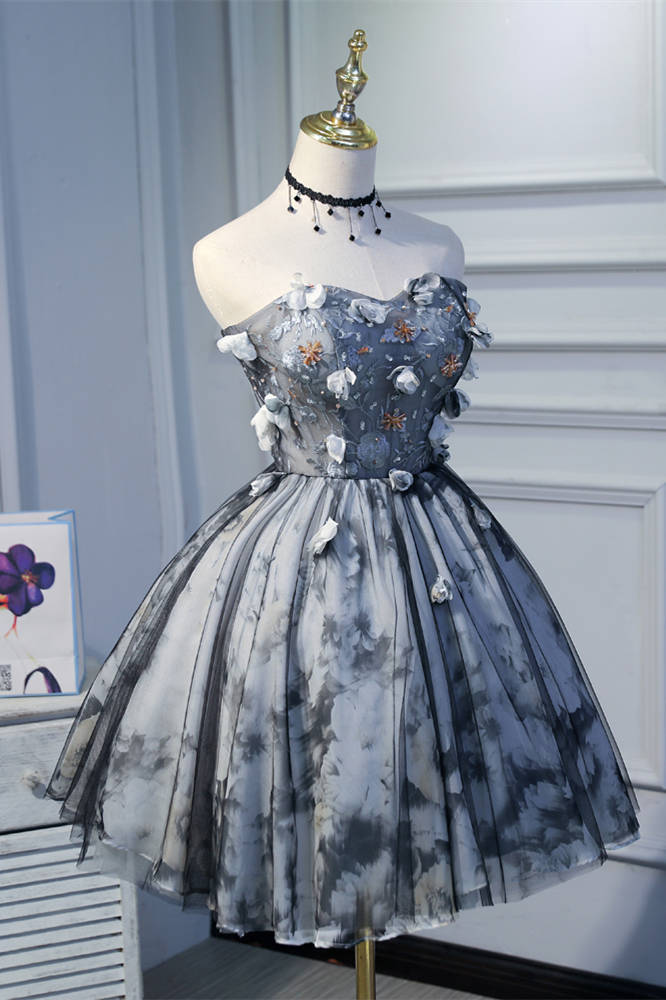 Robe Weitese trapèze décolleté en cœur noire à fleurs, robe de soirée courte sans manches, robe de bal