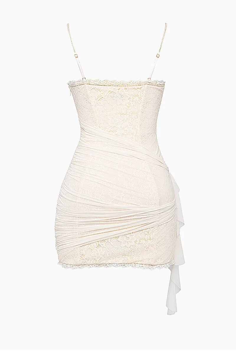 Robe Weitese élégante en dentelle patchwork florale 3D, mini robe à épaules dénudées pour femmes, robe de printemps sexy à col en V et dos nu pour soirée et club