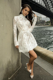 Robe Weitese à manches longues en dentelle, robe de cocktail courte, élégante, col haut, coupe trapèze, robe de soirée