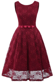 Robe de soirée princesse rose sans manches, coupe trapèze, longueur thé, en dentelle - Bourgogne / US 2 / UK 6 / UE 32