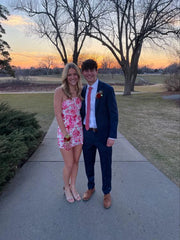 Robe de bal Weitese, robes de soirée courtes fourreau à imprimé floral rose, robes de soirée formelles - US 2 / UK 6 / UE 32