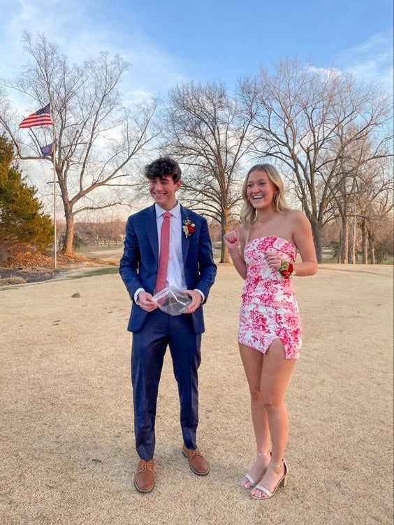 Robe de bal Weitese, robes de soirée courtes fourreau à imprimé floral rose, robes de soirée formelles