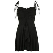 Robe Weitese à bretelles spaghetti, noire, slim, robe d'été, mini, à volants, sexy, tendance, drapée, pour les vacances, nouvelle collection