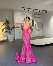 Robes de soirée Weitese pour femmes, col en V, robe de bal sirène à paillettes roses, magasins de robes de bal