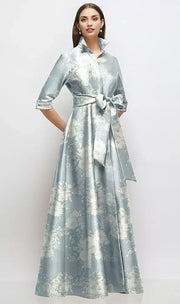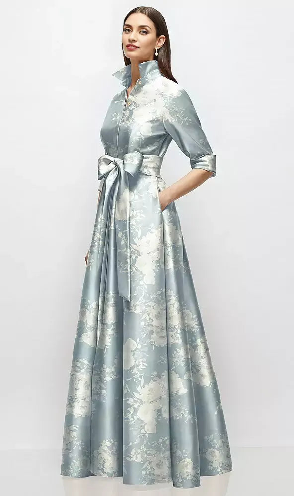 Classic A-Line V Neck 3/4 Sleeve Full Coverage Back Floor-Length Mother of the Bride Dress