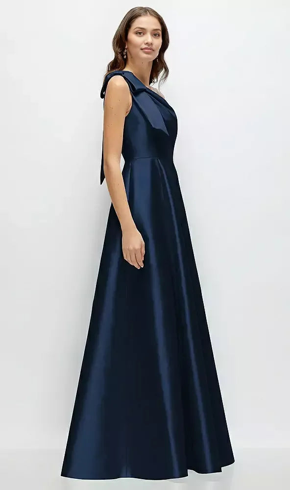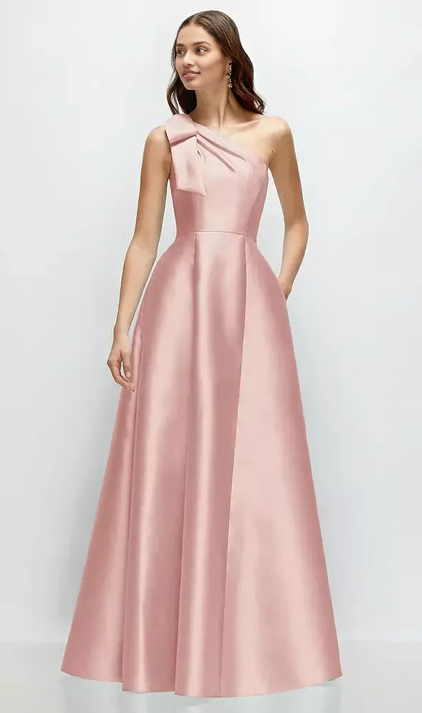 weitese's elegant A-line mother of the bride dress features a sophisticated one-shoulder design that highlights the neckline gracefully. The sleeveless, backless style offers a modern yet timeless appeal, while the floor-length silhouette ensures a flattering fit for formal occasions. Crafted to combine comfort with refined style, it is an ideal choice for mothers seeking a blend of elegance and understated charm on the wedding day.