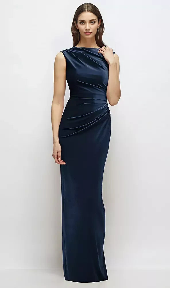 weitese's elegant floor-length mother of the bride dress features a sophisticated column silhouette with a high neckline and sleeveless design, offering a refined and graceful look. Equipped with a discreet zipper closure, it ensures a comfortable and secure fit. Perfect for formal occasions, this dress combines timeless style with modern tailoring to complement and celebrate the special day with understated elegance.