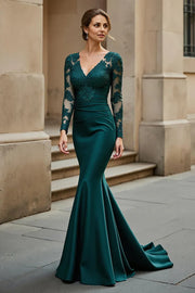 Elegant Mermaid V Neck Long Sleeve V Back Sweep/Brush Train Mother of the Bride Dress - US 2 / UK 6 / EU 32
