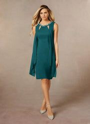 Cette robe trapèze classique à imprimé paon est ornée de sequins scintillants qui reflètent magnifiquement la lumière. Sa coupe mi-longue et sans manches lui confère une silhouette intemporelle, tandis que son décolleté dégagé et son dos goutte d'eau lui confèrent une élégance subtile. Parfaite pour la mère de la mariée, cette robe allie sophistication et confort pour des occasions mémorables.