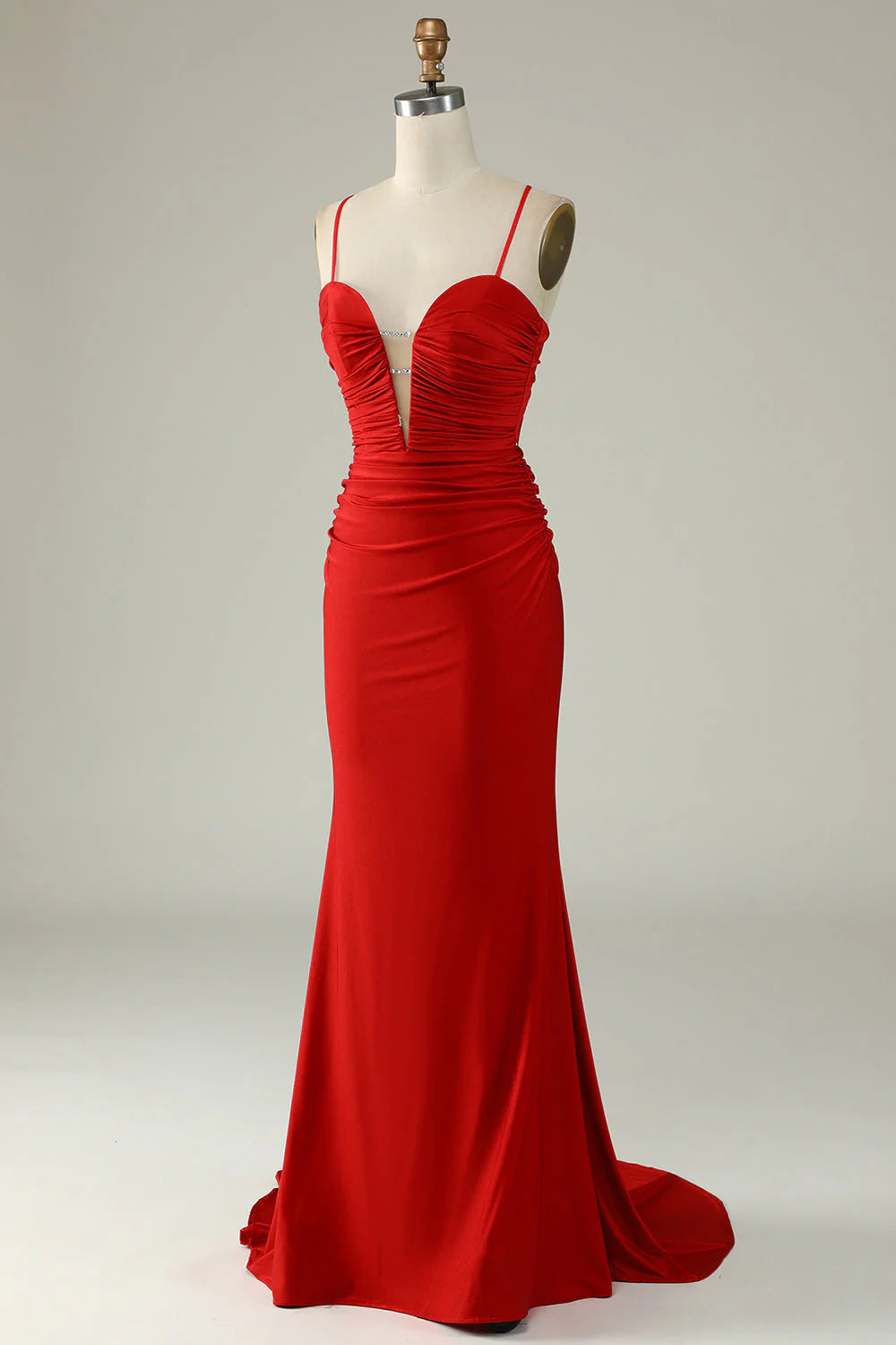 Robe de bal longue vert foncé à bretelles spaghetti et sirène - Vert foncé / US 2 / UK 6 / UE 32