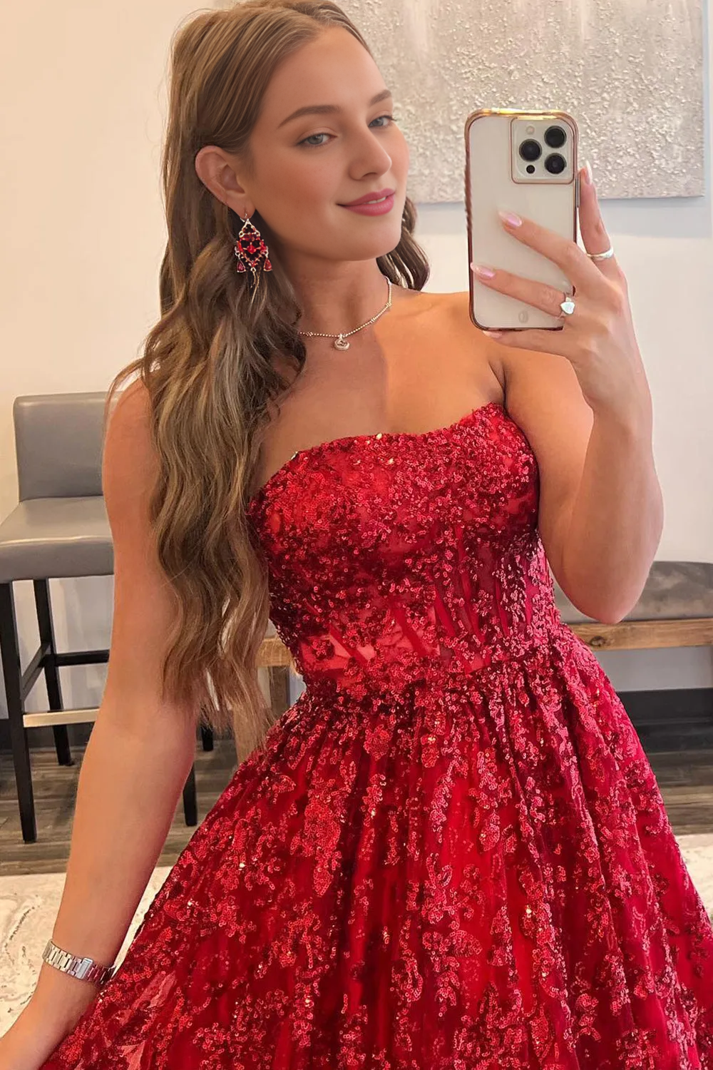Robe de bal longue sans manches, épaules dénudées, coupe trapèze, sans bretelles