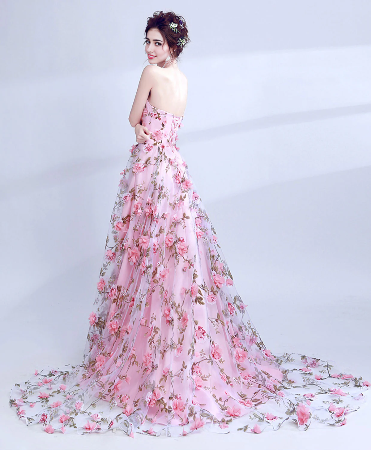 Robe de bal longue en tulle à épaules dénudées et fleurs 3D - US 2 / UK 6 / UE 32