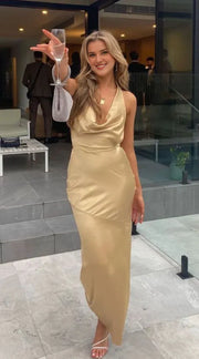 Robe de soirée sexy fourreau dos nu à lacets et bretelles champagne