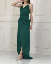 Robe de bal fourreau sans manches pour demoiselle d'honneur, plissée, col en V, fendue - US 2 / UK 6 / UE 32