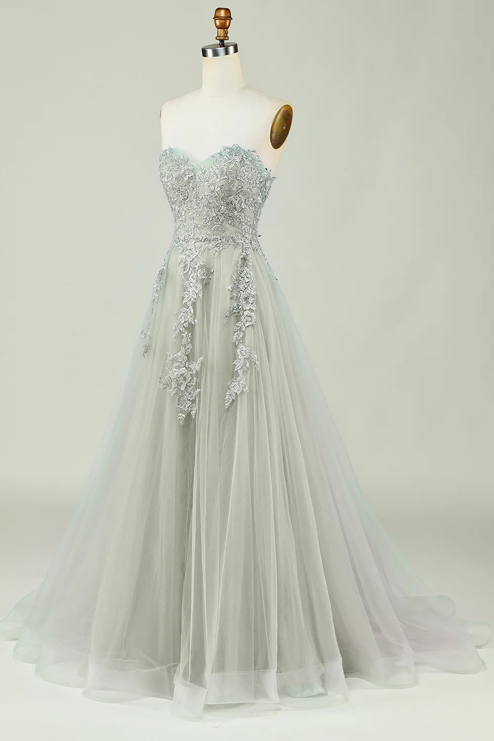 Robe de bal longue dos nu avec décolleté en cœur et fente sur le devant