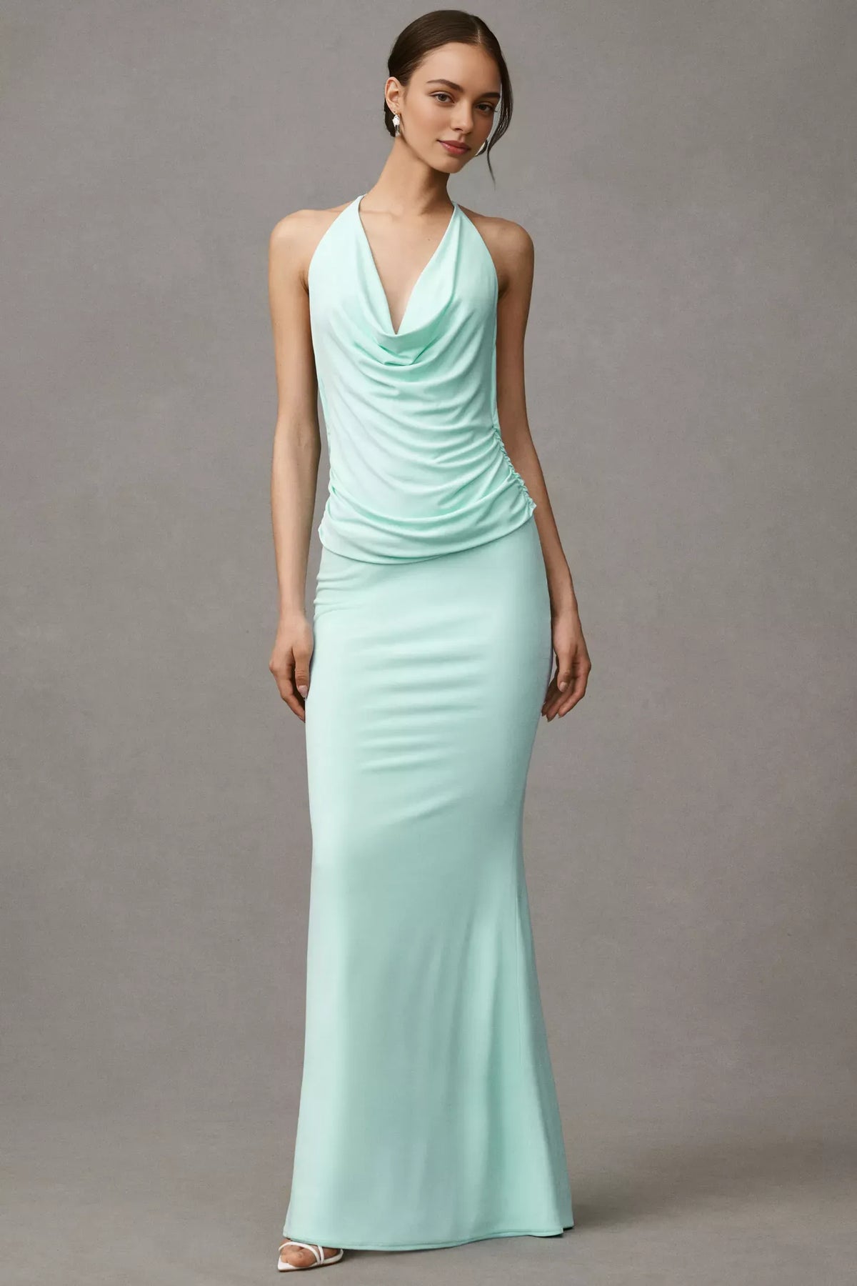 Robe Weitese dos nu col bénitier sirène froncée robe longue dos ouvert bleu ciel robe de bal