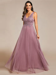 Robe de soirée trapèze en tulle sans manches avec corsage brodé et appliques exquises de Weitese